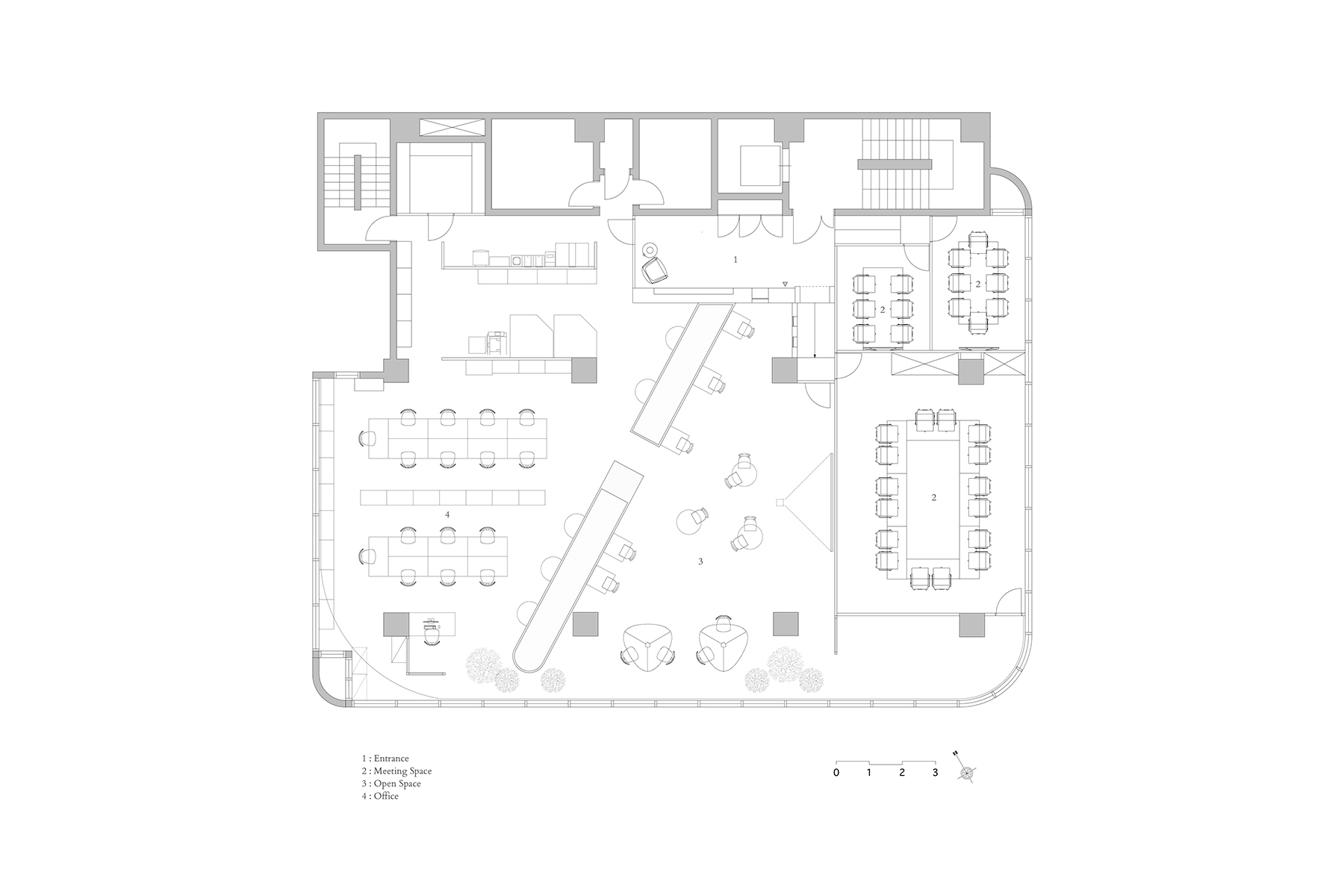 The space was designed to convey “dignified transparency” and “warmth in the negative space,”